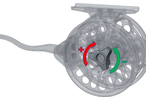 Le frein est utilisé pour la récupération de la soie lors de situations de combat. Très facile à régler grâce au dispositif indiqué sur la photographie, il empêchera au poisson de casser les bas de ligne et permettra au pêcheur de récupérer ou de conserver de la tension de la ligne.
